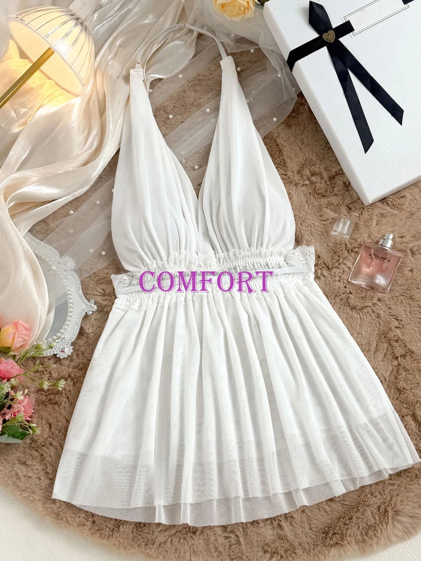 Nuisette Lingerie Femme Sexy – Dentelle et Tulle, Dos Nu, Décolleté Plongeant, Confortable pour Toutes Saisons